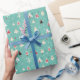 Blue White Christmas Tree Festive Pattern Gift Wrapping Paper