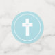 Chic table confetti for a baptism in blue and white, with four of your own photos of you baby boy. Add your baby's initials in blue against white to one side of the smallest confetti, which has a cute cross on the other side.