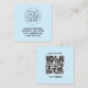 Square business card design features your business logo and custom QR code on the back. Customise the text with your business information, such as the business name, address, phone number, or website.