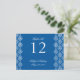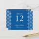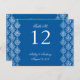 Use the personalise option to change the table number on these elegant royal blue and white damask arabesque table cards. Please NOTE: You MUST change the table number on each card and add one of each number to your cart. If you want to do more extensive changes including changing the font, font colour, or font size use the customise option.