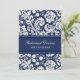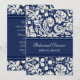 Custom rehearsal dinner party invitations in modern and elegant dark navy blue and cream off white classic floral damask pattern. Personalise the text to create a unique invitation for your wedding rehearsal dinner. Contact us to request a colour change. Available in many matching wedding products.