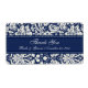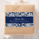 Elegant Wedding thank you labels in stylish dark navy blue and cream off white with classic floral damask pattern, the perfect addition to your wedding, available in many matching wedding products. Perfect for wedding favours or as wedding wine bottle labels.