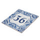 "custom house number plate", "personalised house no plaque", "personal customised text sign", "monochrome fancy ceramic tile", "antique dutch folk art frame", "blue and white vintage classic", "traditional delft monochromatic flowers", "postage mailing post mail address", "decorative country home signage", "apartment villa cottage border"