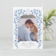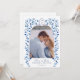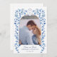 Elegant & unique Hand painted watercolor Blue & white Delft flowers and leaves surrounding a arch frame with couples photo Save the Date card