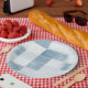 Blue White Denim Jean Stripes Birthday Paper Plate