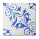 Blue White Farmhouse Rustic Scroll n Leaf Pattern Tile