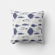 Blue White Fishes Pattern on Wavy Fishing Net Cushion