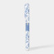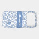Add a sense of style to your day with this playful, elegant, simple custom name cell phone case. Light dusty French country blue boho block print flower and leaf pattern overlays a white background. In addition, bold modern typography overlays a dusty blue panel. Personalize with your name. Makes a chic and modern statement every time you use it. Makes a great gift as well!