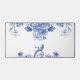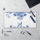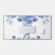 This desk pad has the look of antique china or a Ming vase with a blue and white floral motif.