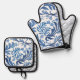 Blue & White Floral Design | Chinoiserie Pattern Oven Mitt & Pot Holder Set