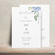 Chic and elegant blue hydrangea wedding program enclosure card, featuring a welcome message, full program details and a custom 'thank you' message. The design features a set of chic dark grey fonts against a white background. Stylish, romantic, elegant with youthful undertones, this design adds just that special something to your big day. Personalise this one-of-a-kind design to make it yours.