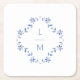 Blue & White Floral Monogrammed Wedding Square Paper Coaster