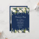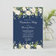 An elegant dark blue and white floral graduation party invitation, with photo on reverse. Copyright Elegant Invites, all rights reserved.