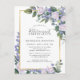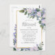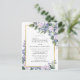 Pretty watercolor white roses and blue flowers are nestled in dark green leaves on a gold frame.