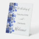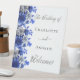 A white background, decorated with blue and white flowers. Personalise and add your names.