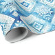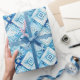 Blue White Floral Squares Bridal Shower Wrapping Paper