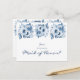 On front: A classic chic white background. Decorated with watercolored flowers, florals in shades of blue. Template for the maid of honour's name. Text: Will you be my Maid of Honour? The text: Maid of Honour is written with large modern hand lettered style script, blue coloured letters.