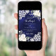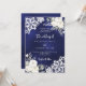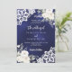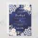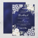 For an elegant and romantic wedding. A navy blue, uneven coloured background decorated with white florals, roses and white lace. Personalise and add your names and details.