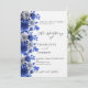 A white background, decorated with blue and white flowers. Personalise and add your names and details.