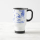 traditional blue white flower china pattern travel mug side initial. On trend yet timeless in modern homes and country kitchens. blue white flower china with initial monogramme text which is customisable