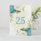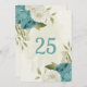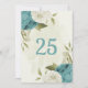 blue white flowers greenery table number card