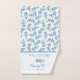 Beautiful hand towel in blue and white with a floral pattern of forget-me-not flowers. Add family name too in elegant blue letters.