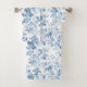 Pretty blue and white floral three-piece bath towel set. Classic timeless design.