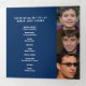 Simple modern graphic funeral program square shaped in a dark blue and white. Replace the sample text and twelve placeholder photos with your own special photos and memorial order of service, obituary, reading or poem, and acknowledgements, and personal information details. Other matching funeral keepsake remembrance items are available. Design by www.mylittleeden.com