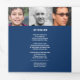 Simple modern graphic funeral program square shaped in a dark blue and white. Replace the sample text and twelve placeholder photos with your own special photos and memorial order of service, obituary, reading or poem, and acknowledgements, and personal information details. Other matching funeral keepsake remembrance items are available. Design by www.mylittleeden.com