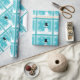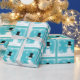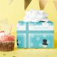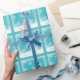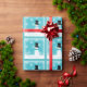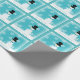 Happy winter holidays seasonal wrapping paper featuring a nice snowman with a black topper, blue bow tie happily sitting under the snow.