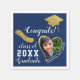 Create unique blue, white and gold graduation napkins for the class of 2026 graduate with a heart-shaped photo (use the template to upload your picture), Congrats saying, and grad's cap and diploma illustrations. It's easy to change the background colour inside the design tool to match your school colours. Please, personalise with the graduate's name and surname, upload a custom photo, and type a year before ordering.