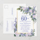 Blue White Gold Floral 60th Birthday Party Invitation Postcard