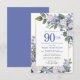Blue White Gold Floral 90th Birthday Invitation