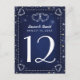Blue White Gold Hearts & Stars Table Number Cards