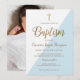 Blue White Gold Modern Baby Boy Photo Baptism Invitation
