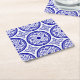 Blue White Gothic Tile Pattern Square Paper Coaster