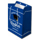 This modern blue and white custom graduation party gift bag features classy typography of your high school or college name for the class of 2025. Customise with your graduating year under the chic handwritten script and black grad cap for great personalised graduate presents.