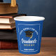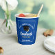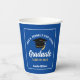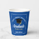This modern blue and white custom senior graduate paper cup features classy typography of your high school or college name for the class of 2025. Customise with your graduating year under the chic handwritten script and black grad cap for a great personalised graduation party keepsake gift.