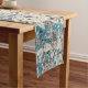 Blue White Graphic Flowers Pattern Short Table Runner