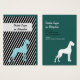 Business Cards with minimal Great Dane illustrations in blue and white with bold, striped background and two sides printed.