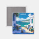 This is a stylish blue and white Greece illustration on a magnet showcasing the beautiful architecture of the greek island. Makes a great Souvenir and gift idea for every tourist and visitor.