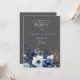 The majority of the text on this invitation is printed in crisp white, creating a classic and elegant look. However, the couple's names are written in a soft blue script, perfectly matching the blue edges of the dark blue flowers. This adds a touch of personality and romance to the design, making it the perfect invitation to announce your engagement.