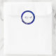 Winter holiday art with an elegant pattern of pine boughs and pinecones in blue and white on an icy background of blues and violet. Add your own personal message to this sticker!