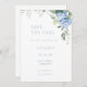 This beautiful floral hydrangea flat wedding save the date card exudes a fresh, elegant and youthful tone. The front of the card includes invitation text, a wedding website address, wedding info as well as a lovely arrangement of blue hydrangeas. The set of dusty blue fonts are modern and stylish against a white background. Personalise this elegant and stylish wedding invite to make it your very own.