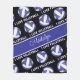 This cute volleyball themed fleece blanket for girls features the realistic image of a volleyball that has blue and white panels patterned at an angle with the sporty font text phrase "I love volleyball" in white that stretches between the angled rows of volleyballs - the volleyballs' blue panels are blended with a girly kaleidoscopic pattern for a textured appearance - personalise her name in a sophisticated handwritten font on an angled chunky full width blue colour strip - background is customisable black - by katz_d_zynes