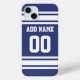 Blue White Jersey Stripes with Name and Number Case-Mate iPhone Case