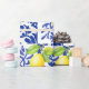 Blue White Lemon Tile Pattern Mediterranean Citrus Wrapping Paper