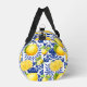 Blue White Lemon Tile Pattern Monogram Name Citrus Duffle Bag