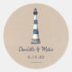 Blue White Lighthouse Kraft Wedding Classic Round Sticker