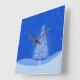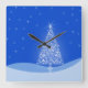 Blue White Merry Christmas Tree Stars Night Light Square Wall Clock